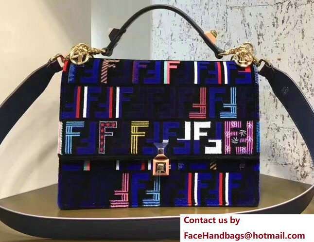 Fendi Leather And Silk Yarn Flap Medium Kan I Logo Bag Blue 2018